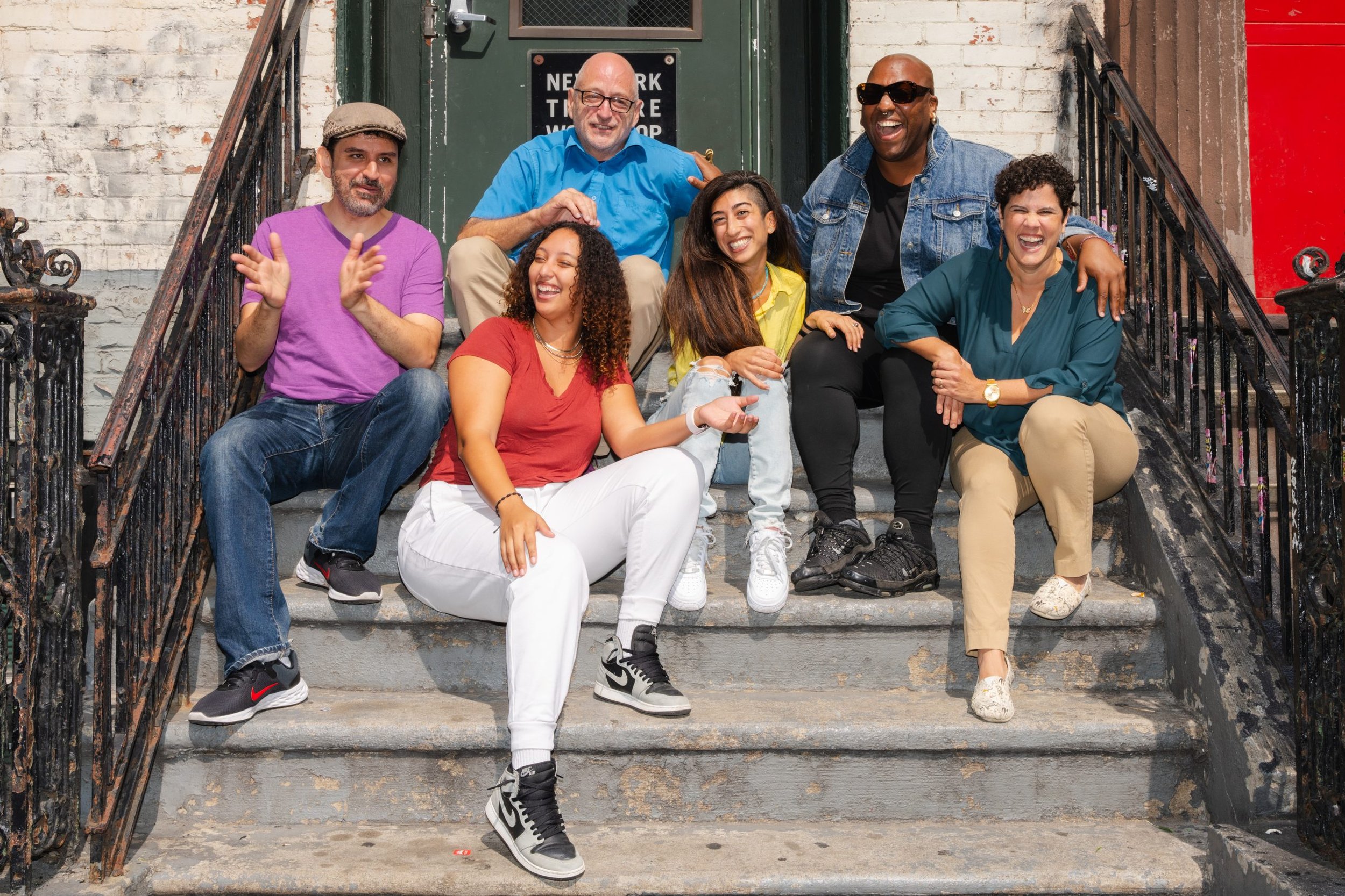 From left to right: Marco Antonio Rodríguez (playwright), Tony Macy-Pérez, Angela Reynoso, Shadi Ghaheri, Willie the Genius and Mino Lora (artistic director)