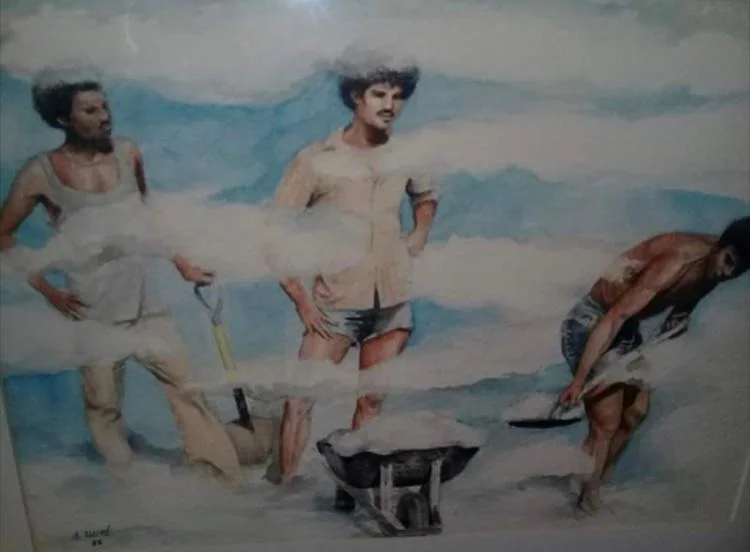 A detail from “Obreros recogiendo nubes” [Workers Collecting Clouds] by Dominican painter Ángel Haché. Source: Elsa Núñez's Facebook wall