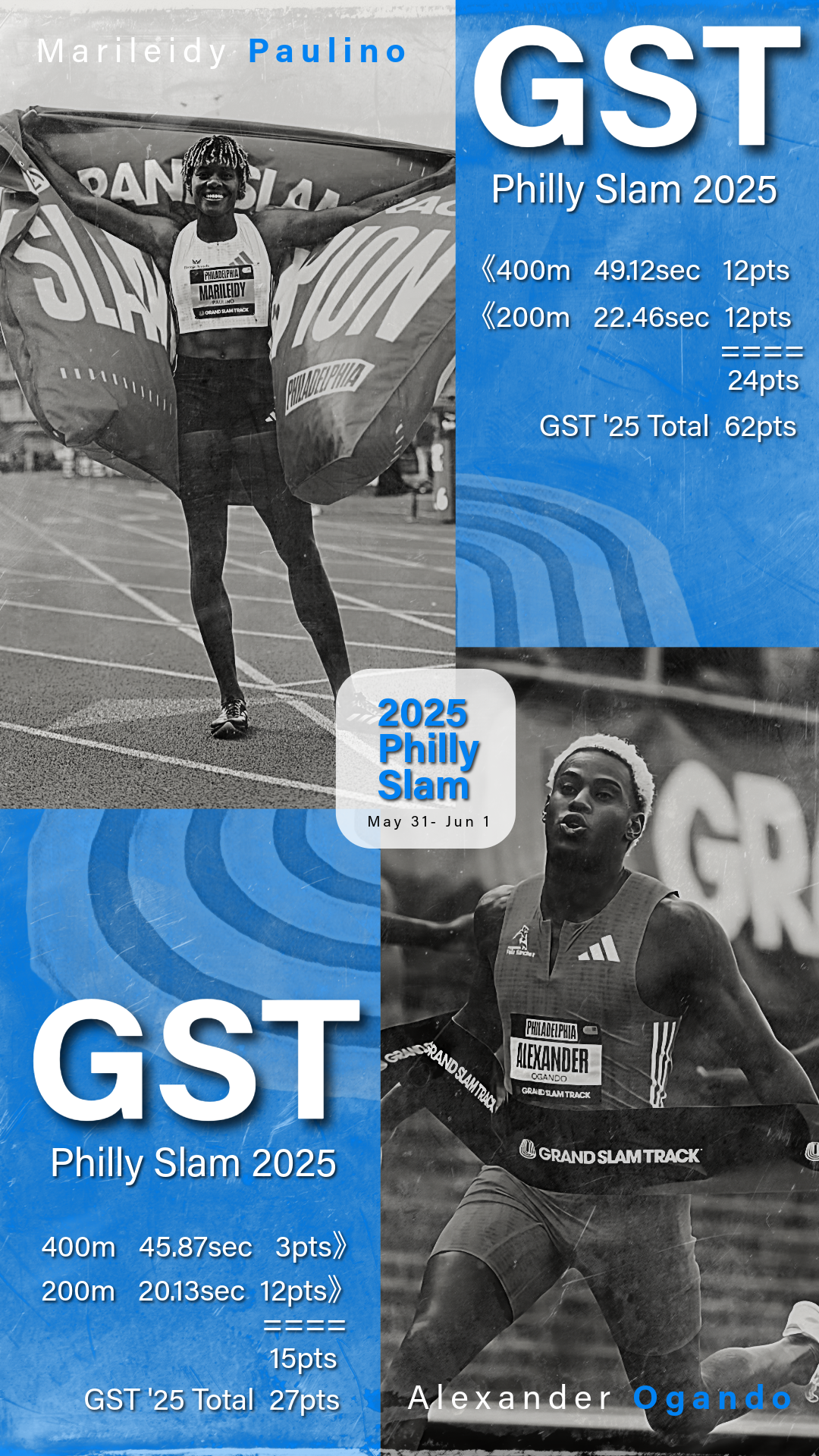 Marileidy Paulino gana de nueva vez y de manera convincente una etapa del torneo Grand Slam Track 2025 al ganar en primer lugar ambos eventos, 200m y 400m planos. Paulino venia de ganar de igual forma la segunda etapa en Miami a comienzos de mayo. En el primer día, el 31 de mayo, Marileidy corrió los 400m planos en un tiempo de 49.12 segundos para ganar el primero de los dos eventos que participa dentro del torneo, logrando los doce puntos máximos. Ese tiempo fue lo suficientemente bueno convertirse en el tiempo record del Franklin Field y su mejor marca dentro del torneo de las tres carreras que ha corrido además de ser la mejor marca de la temporada para ella en 400m.