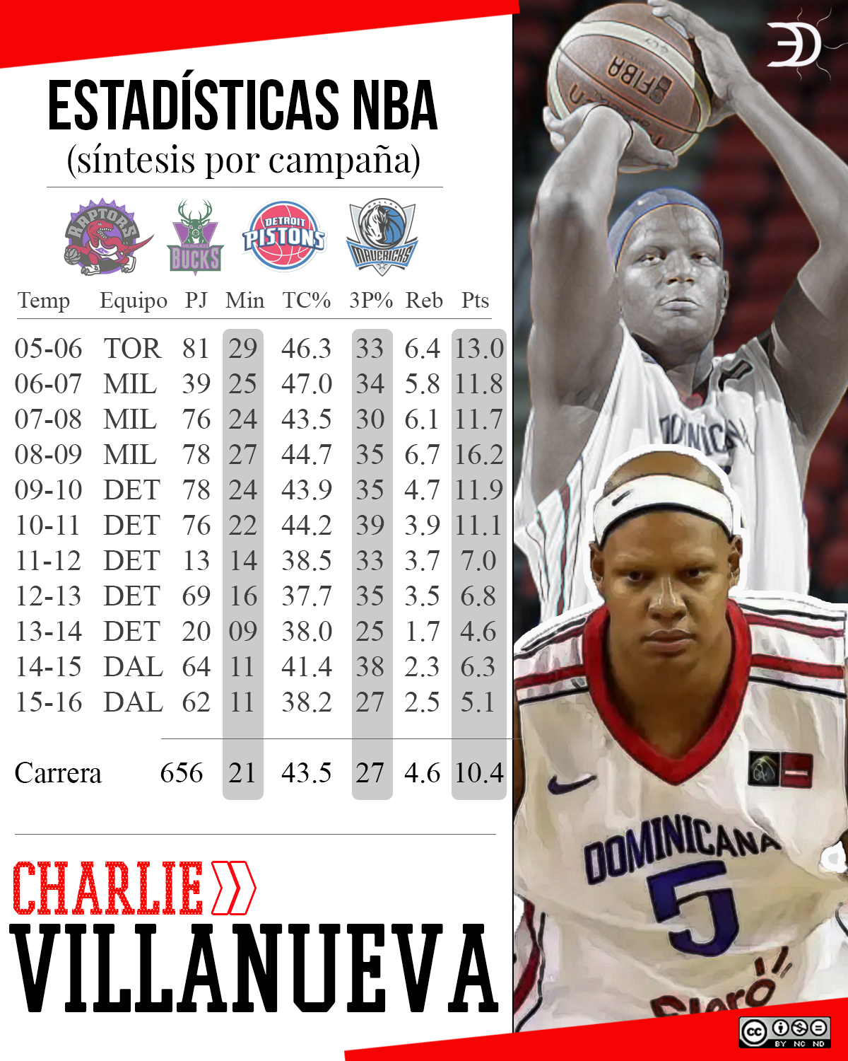Estadísticas de la carrera en la NBA de Charlie Villanueva