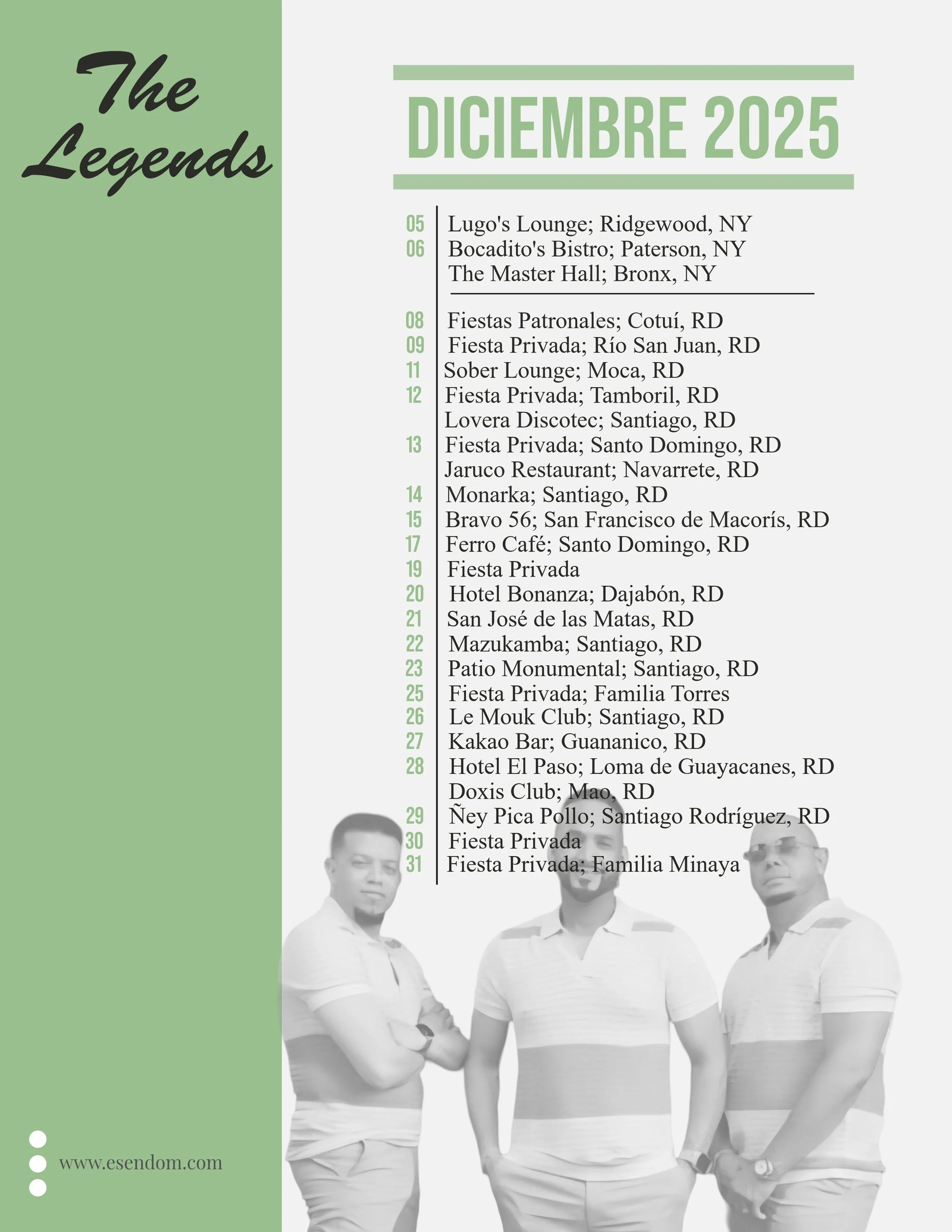 The Legends - Itinerario diciembre 2025 December 2, 2025Itinerarios, merengue tipicoEMMANUEL ESPINALComment