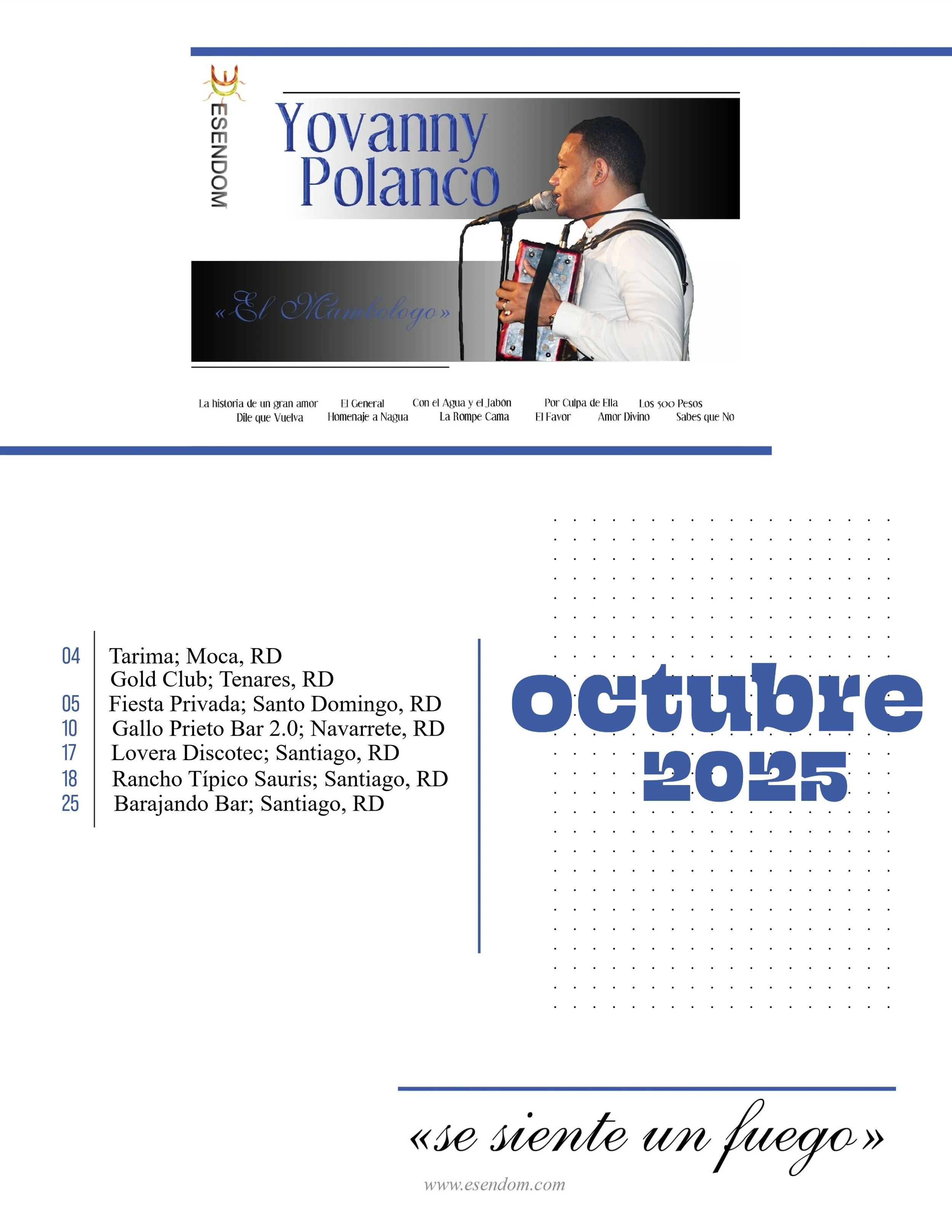 Yovanny Polanco - Itinerario octubre 2025 September 30, 2025Itinerarios, merengue tipicoEMMANUEL ESPINALComment