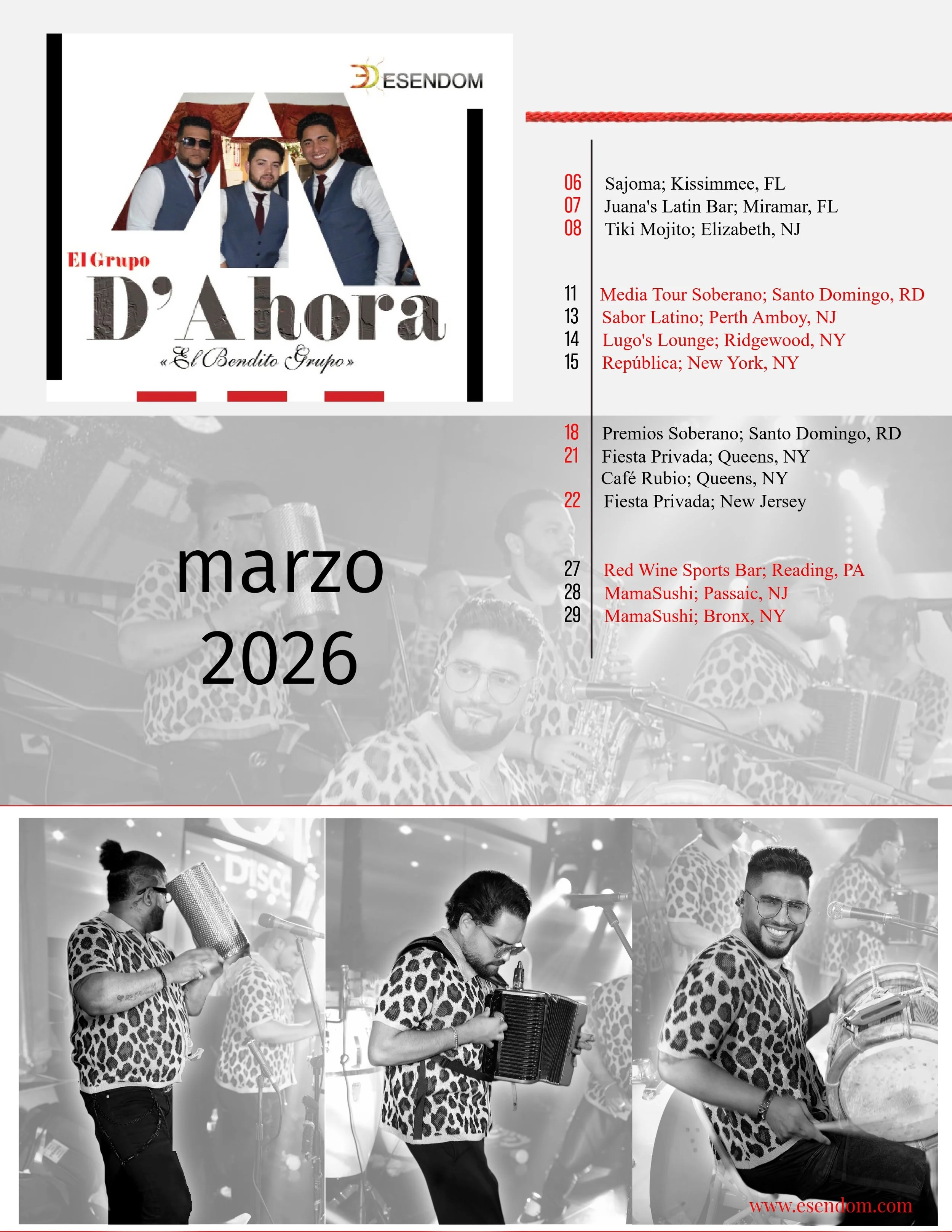 El Grupo D' Ahora - Itinerario marzo 2026 March 13, 2026Itinerarios, merengue tipicoEMMANUEL ESPINALComment
