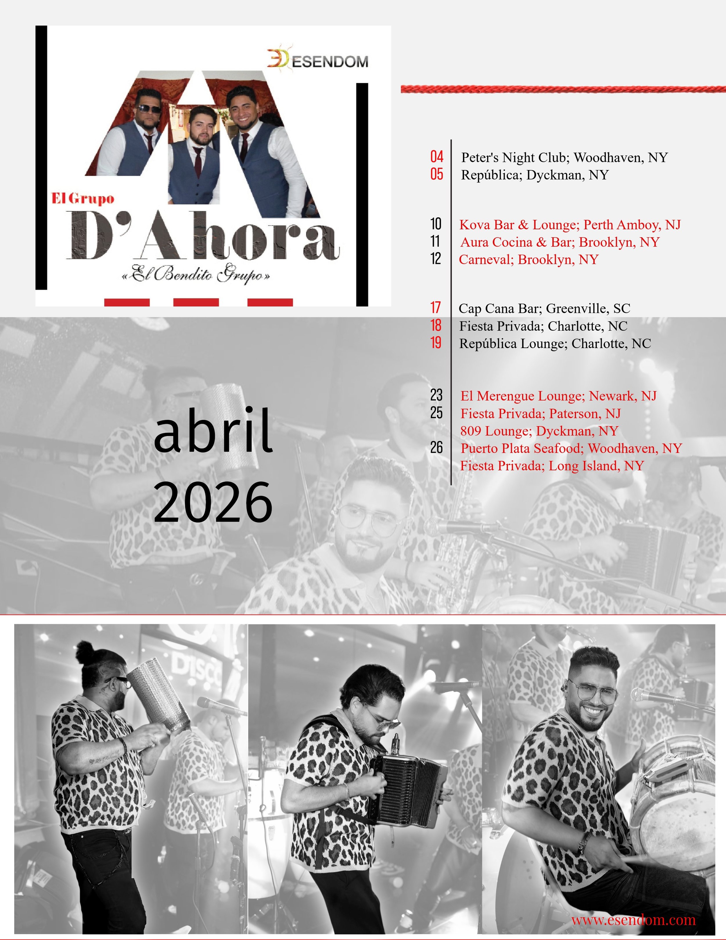 El Grupo D' Ahora - Itinerario abril 2026 April 9, 2026Itinerarios, merengue tipicoEMMANUEL ESPINALComment