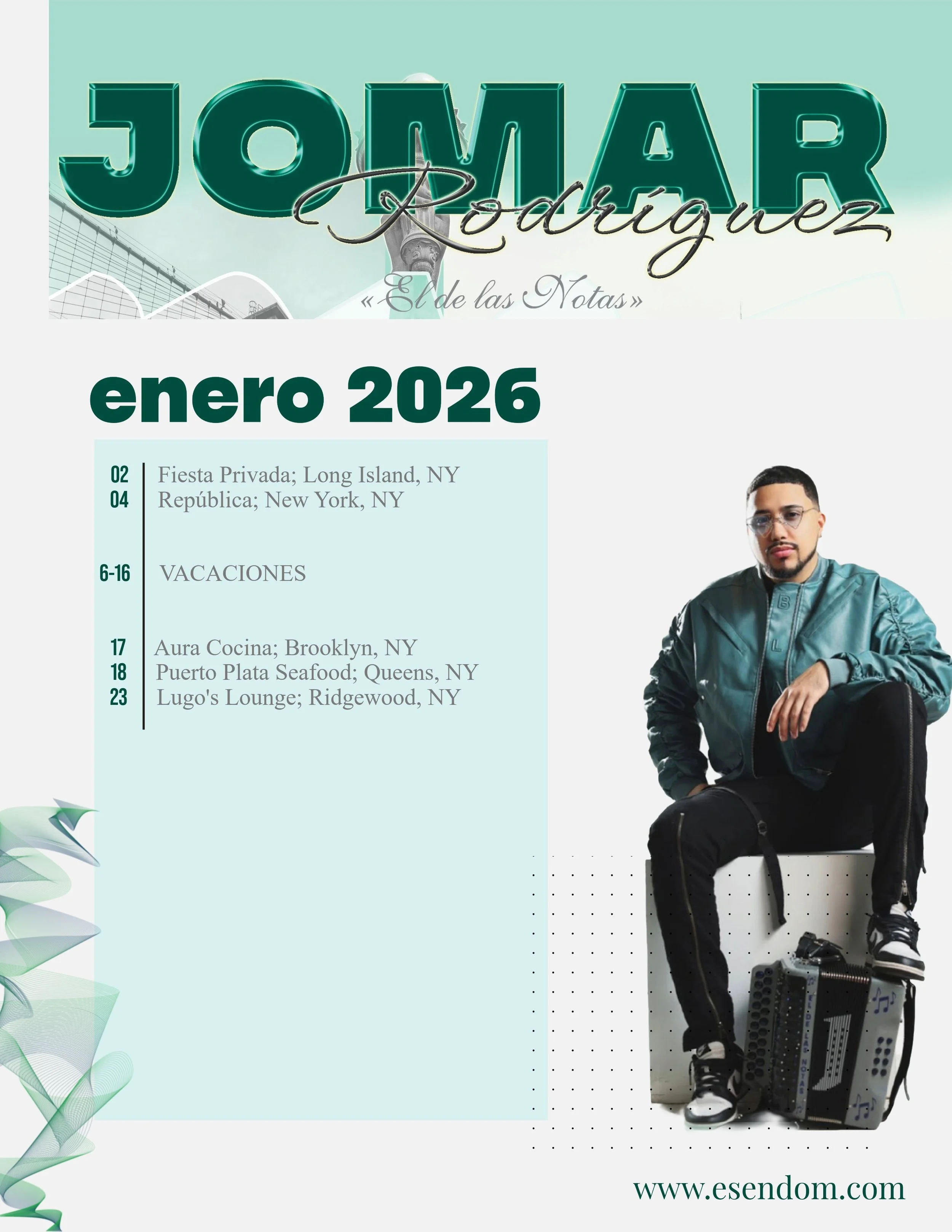 Jomar Rodríguez - Itinerario enero 2026 January 2, 2026Itinerarios, merengue tipicoEMMANUEL ESPINALComment