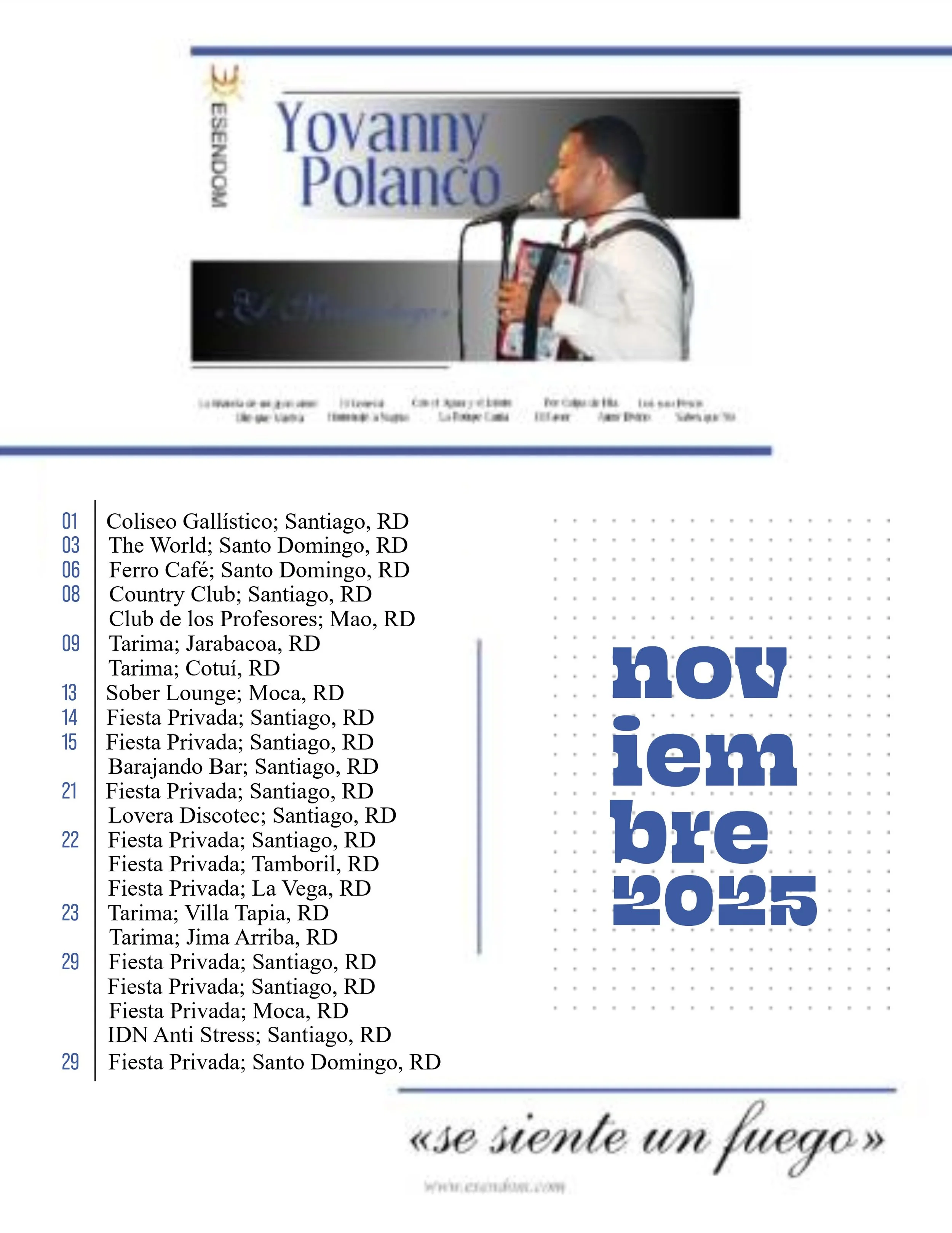 Yovanny Polanco - Itinerario noviembre 2025 October 31, 2025Itinerarios, merengue tipicoEMMANUEL ESPINALComment