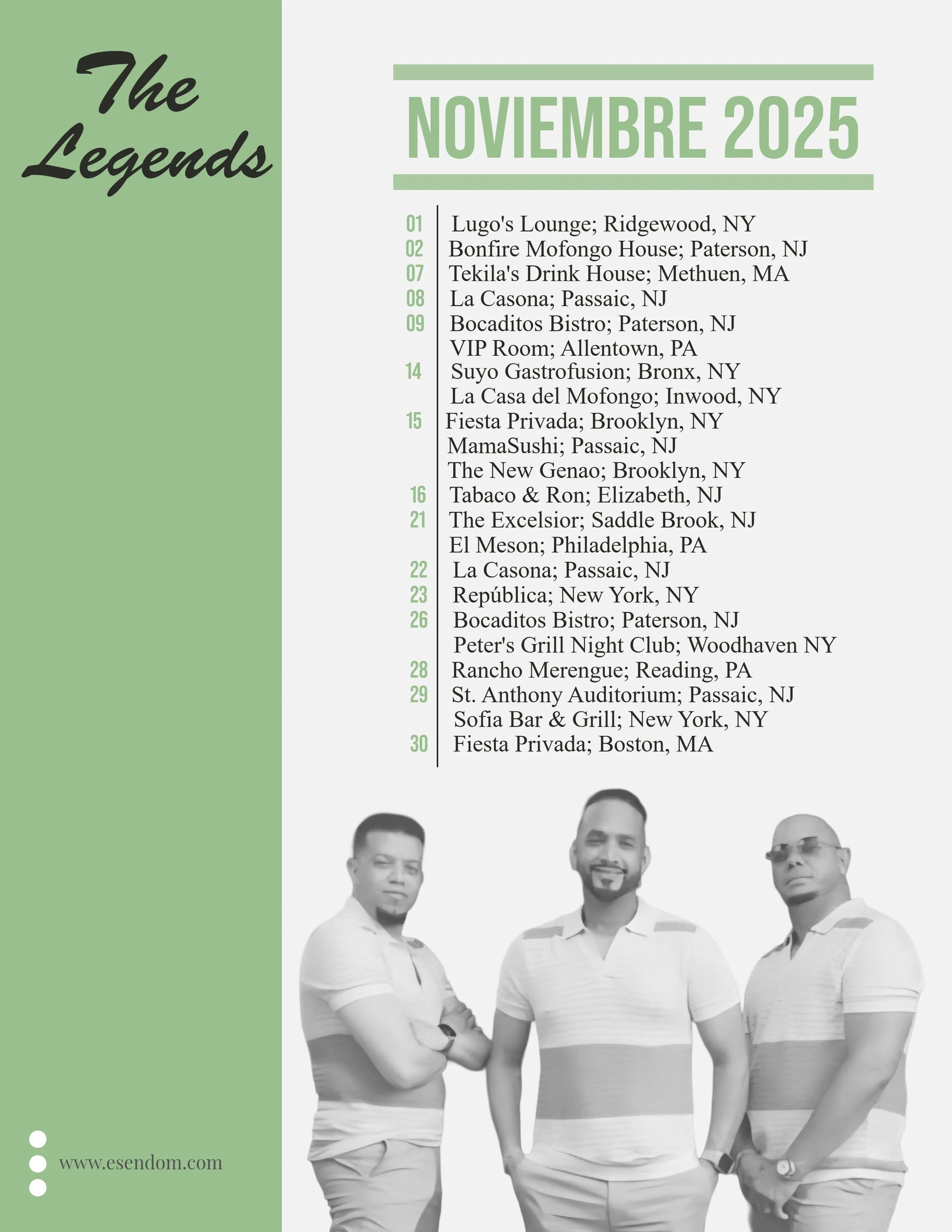 The Legends - Itinerario noviembre 2025 October 31, 2025Itinerarios, merengue tipicoEMMANUEL ESPINALComment