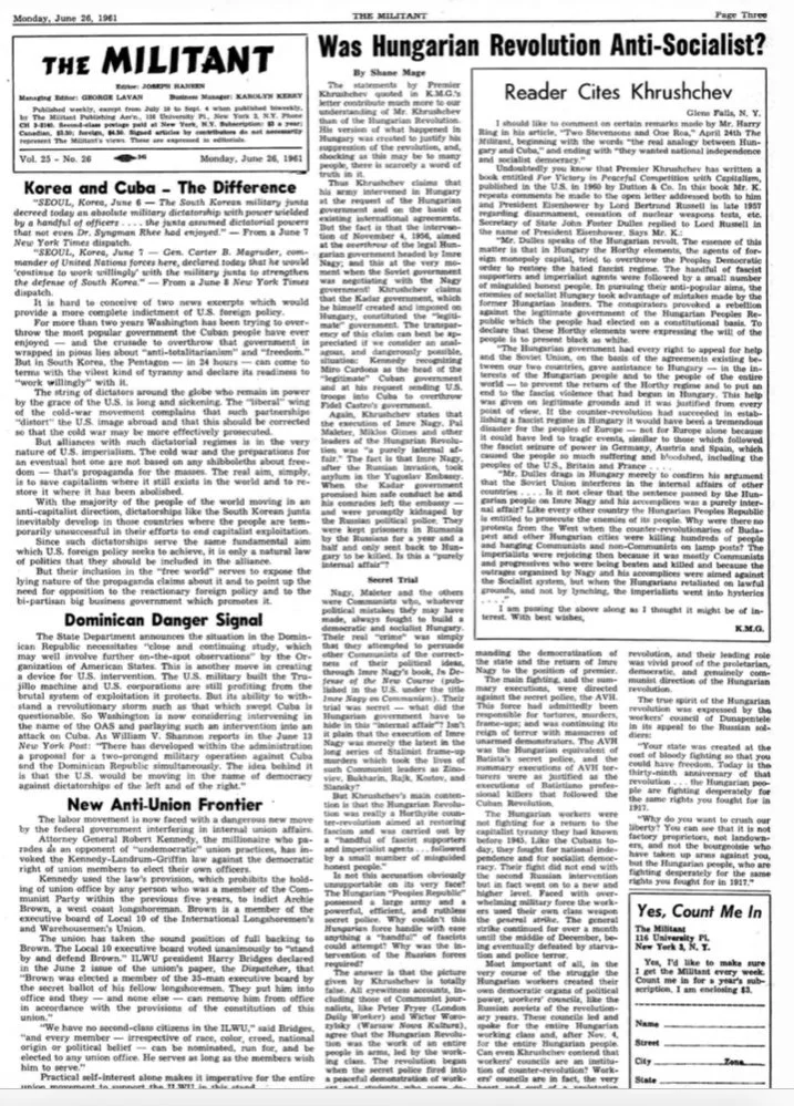 2. “Dominican Danger Signal”, The Militant, Vol.25, No.26, p.3, 1961.