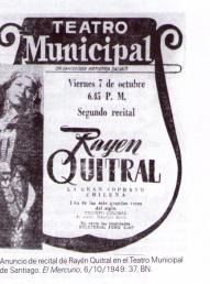 El 29 de abril de 1938 se presentó en el Teatro Solís de Montevideo en un concierto, acompañada al piano por su maestra y fue anunciada como «concierto de la soprano araucana Rayén Quitral».
