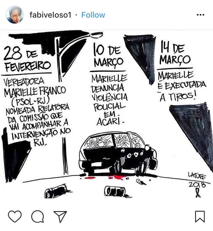 In 2016, Marielle was elected to the Rio de Janeiro city council. Two weeks ago, she was appointed rapporteur for a special commission that the city council created to monitor the ongoing federal intervention in Rio de Janeiro and the militarization of public security.