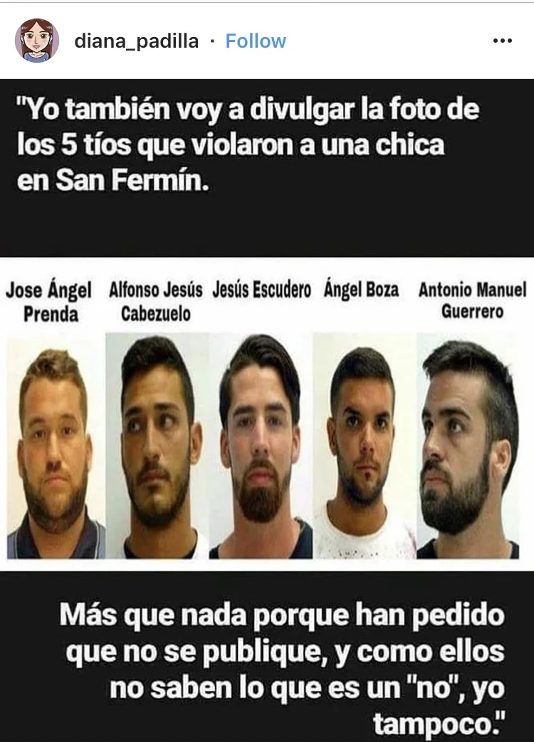 On April 26, Spanish judge Ricardo González sentenced five men accused of gang rape to nine years for committing sexual abuse while clearing the men of the real crime: sexual aggression or rape. The gang rape accusation steams from 2016 when the five men attacked an 18 year-old woman during the traditional San Fermín festival in 2016.